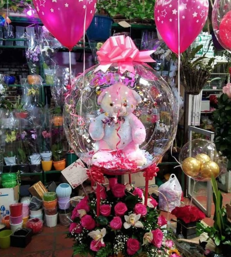 Arreglo de rosas, peluche y globos# 17 cantidad