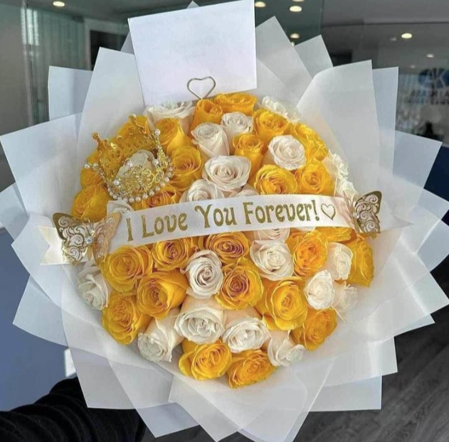Bouquet de rosas amarillas y blancas x 50 # 65 cantidad
